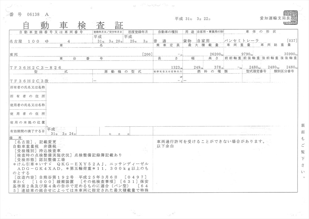 | 荷台内寸 | 1281×238×225cm 長x幅x高 |
