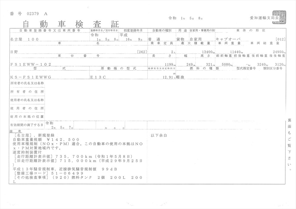 | 積載量 | 13,400kg |