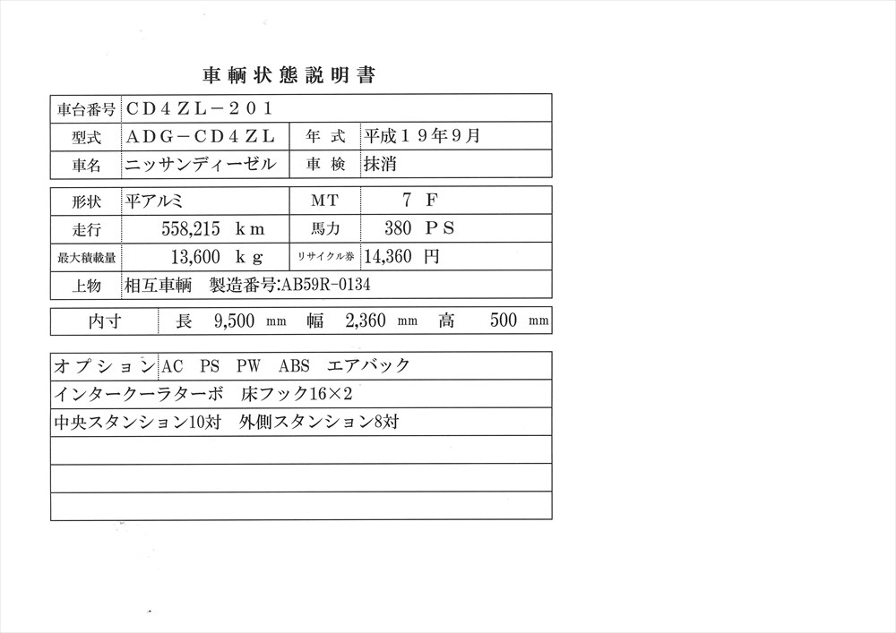 | コメント | 上物:相互車輌 インタークーラターボ 床フック16×2 中央スタンション10対 外側スタンション8対 価格のお問い合わせは、052-821-1557(ナカヤ)まで。 保障なし |