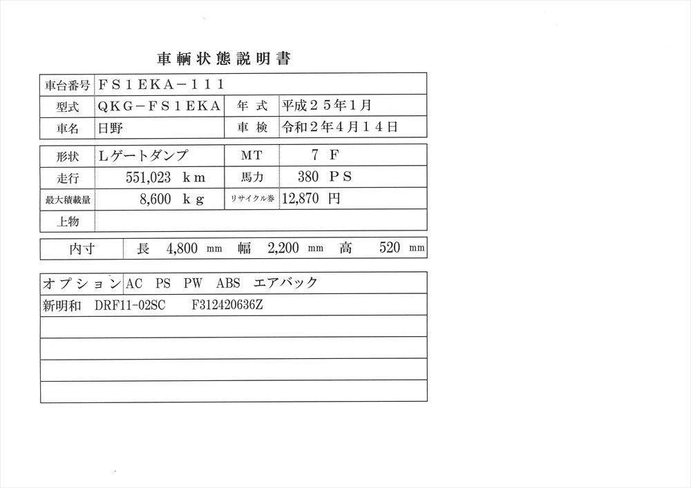 | 荷台内寸 | 480×220×52cm 長x幅x高 |