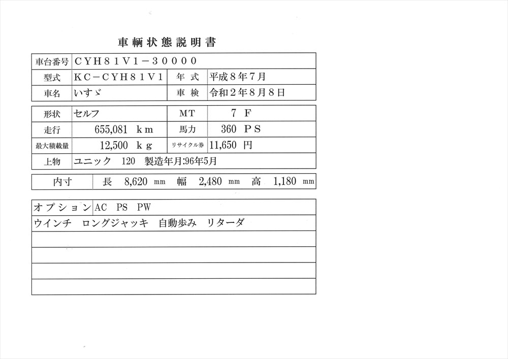| コメント | 積載12.5t 走行65万㎞ 車検2年8月 ウインチ セルフ 自動歩み リターダ 価格のお問い合わせは、052-821-1557(ナカヤ)まで。 |