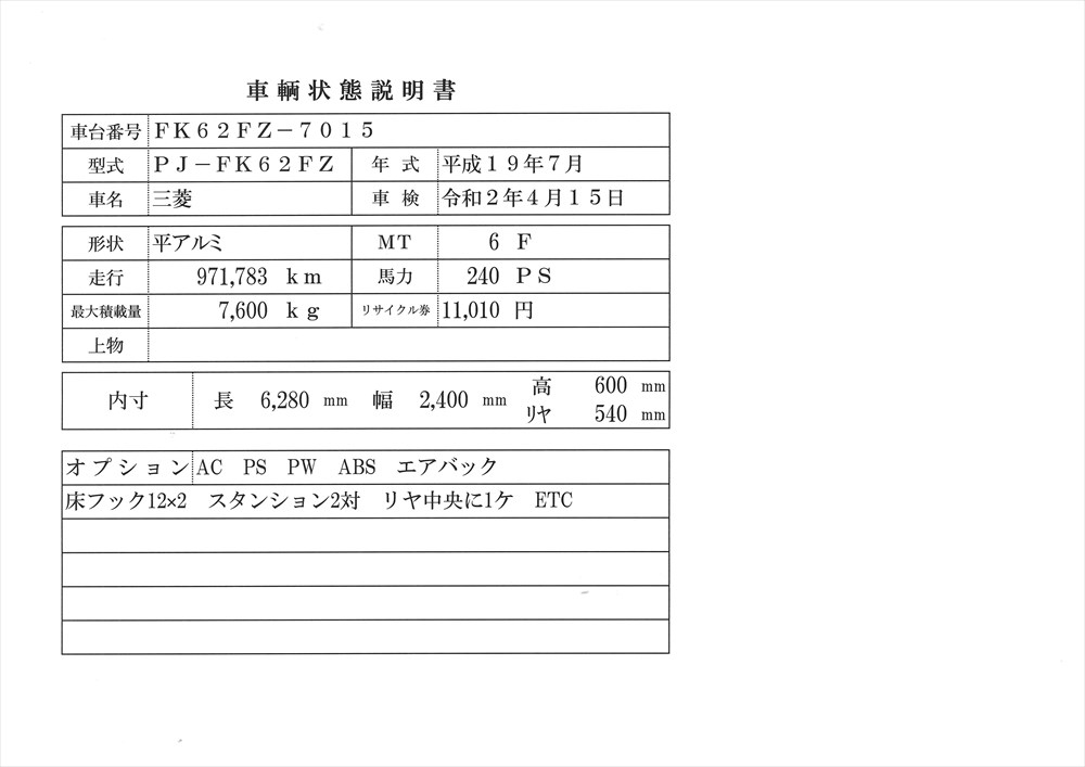 | コメント | 床フック12×2 スタンション2対 リヤ中央に1ケ ETC 価格のお問い合わせは、052-821-1557(ナカヤ)まで。 保障なし |