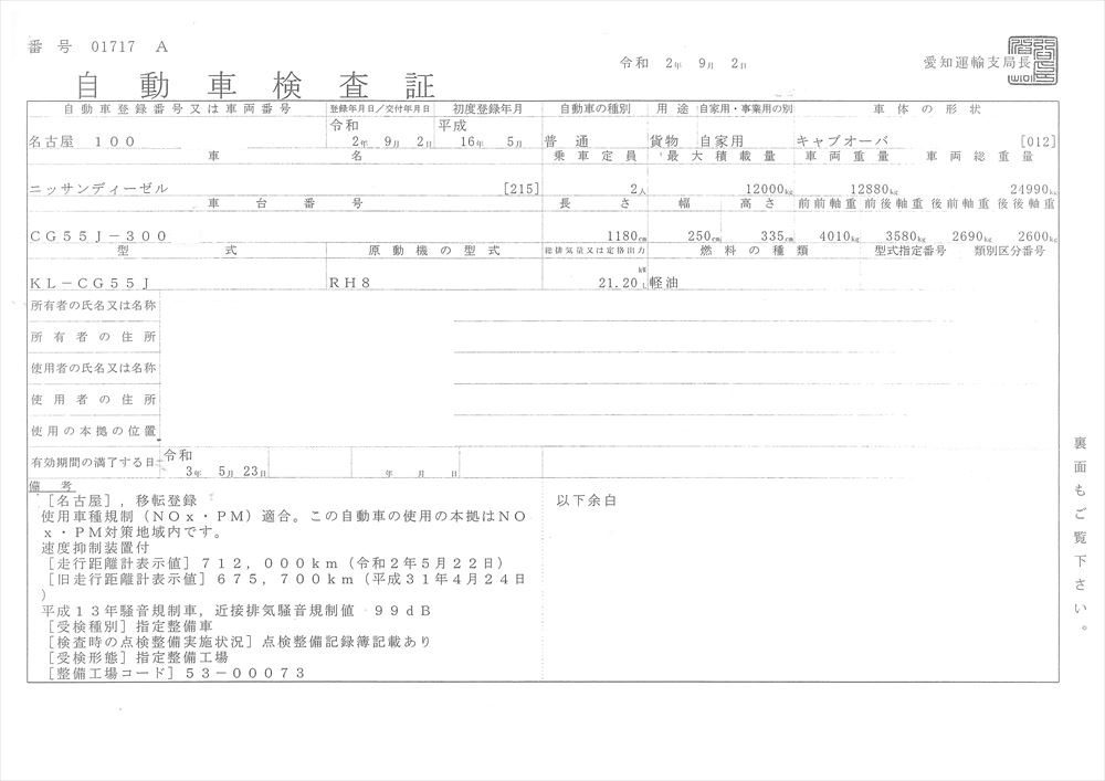 | 積載量 | 12,000kg |