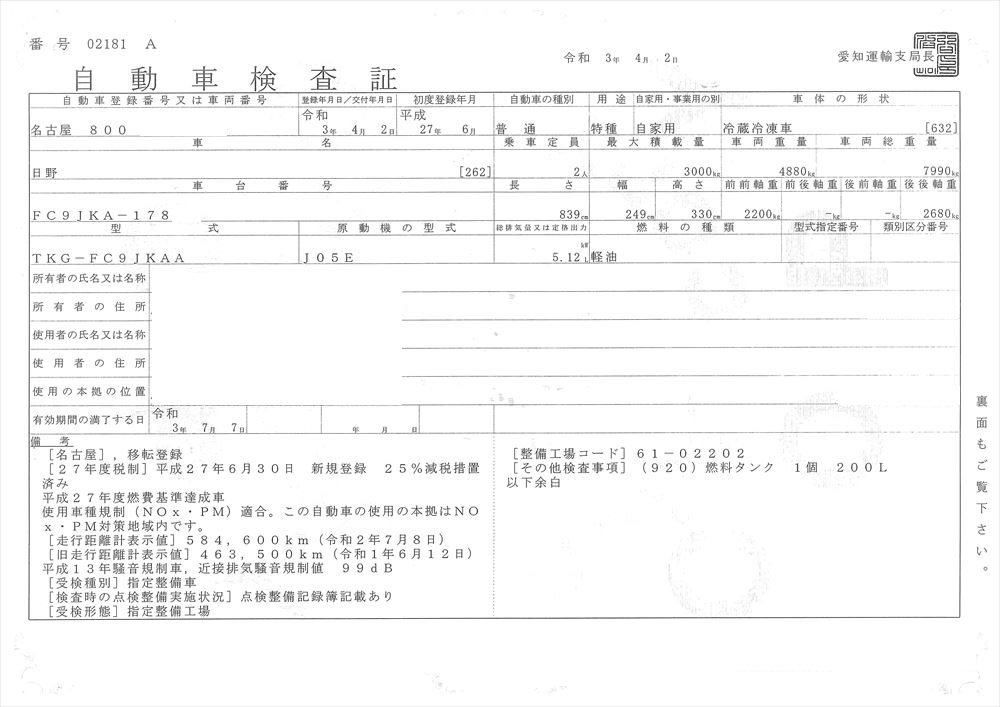 | コメント | 格納パワーゲート新明和 縦1m55 横巾2m20 左サイドドア 横巾1m20 縦2m02 上物箱:トランテックス 型式HFCKA-FLAFDN インタークーラーターボ エバハウス ラッシング2段 床アルミ板 ベットレス バックモニタ ETC 価格のお問い合わせ052-821-1557ナカヤまでお電話お待ちしてます。 |