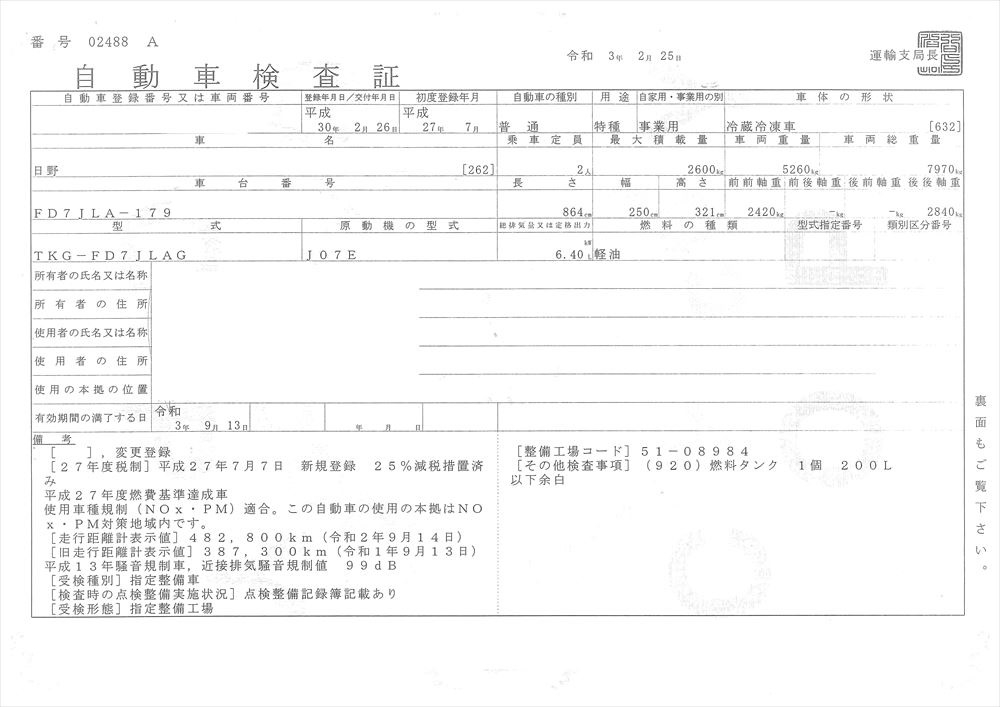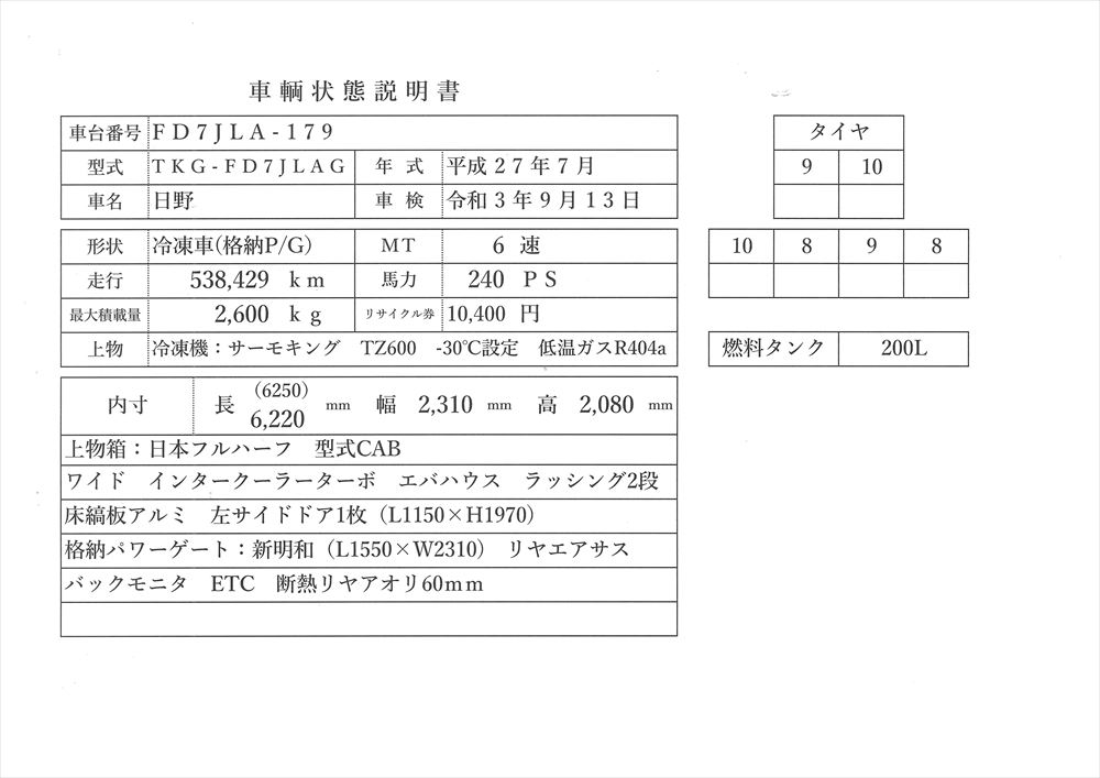 | コメント | 冷凍機:サーモキング TZ600 -30℃設定 低温ガスR404a 上物箱:日本フルハーフ 型式:GAB ワイド インタークーラーターボ エバハウス ラッシング2段 床縞板アルミ 左サイドドア1枚(L1150×H1970) 格納パワゲート:新明和(L1550×W2310)リヤエアサス バックモニタ ETC 断熱リヤアオリ60mm 価格のお問い合わせ052-821-1557ナカヤまでお電話お待ちしてます。 |