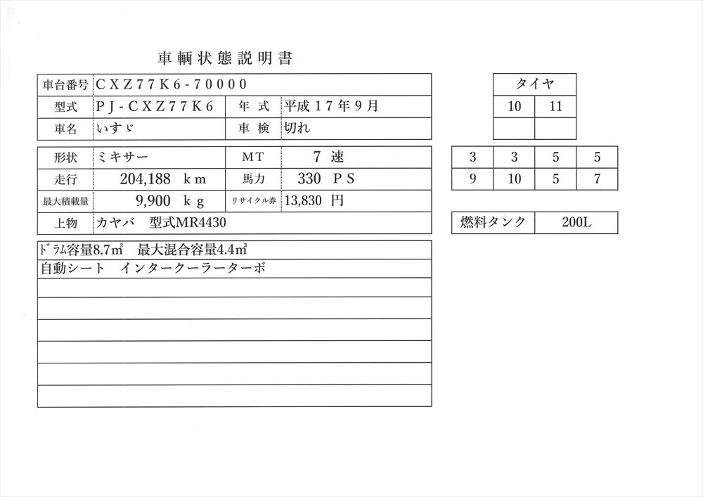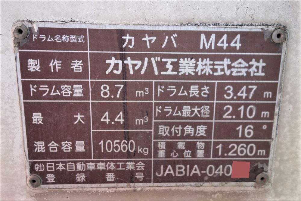 | コメント | カヤバ型式MR4430 ドラム容量8.7㎥ 最大混合容量4.4㎥ 電動シートホッパーカバー(写真) いすゞ 330Ps 直列6気筒インタークーラーターボ 7速ミッション 2デフ 車検3年10月5日 走行204188㎞ 価格のお問い合わせ052-821-1557名輸自動車 中谷(ナカヤ)までお電話お待ちしてます。 |