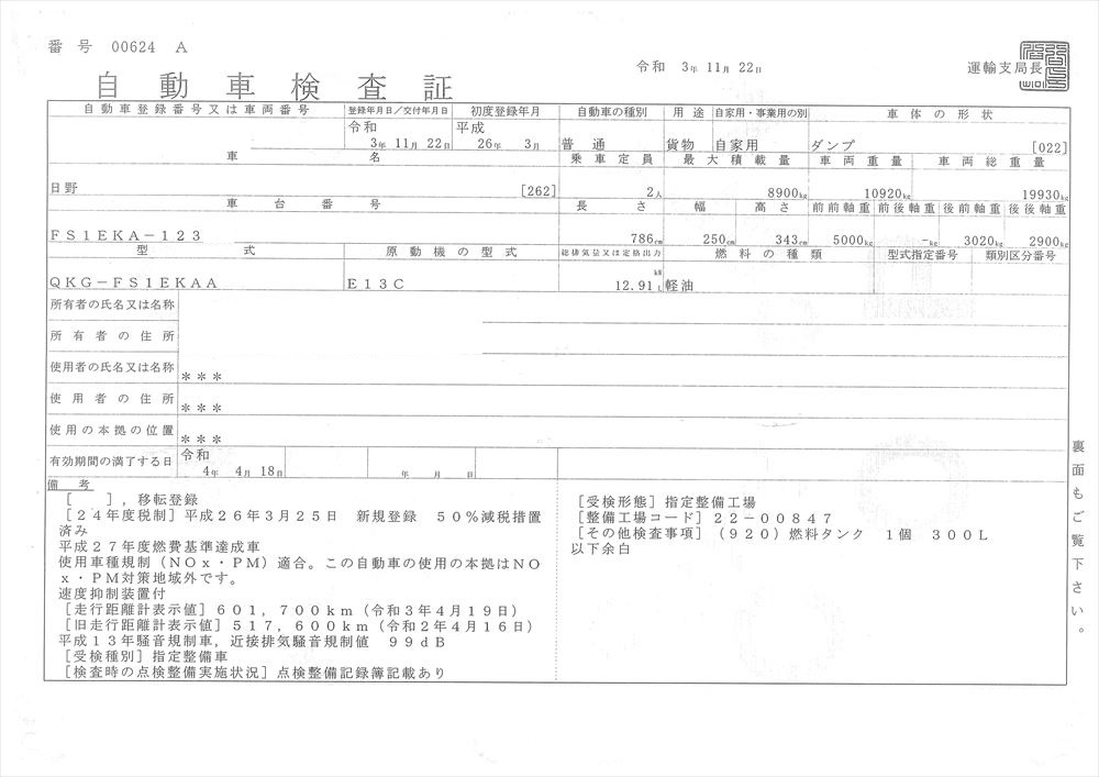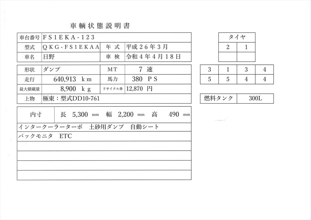 | コメント | 日野 土砂用ダンプ 車検付 4年4月18日 2デフ7速ミッション 380Ps 積載8.9t 走行64万㎞ ボデーメーカー 極東 自動シート ボデー長L530 W220 H49 300L燃料タンク バックモニタ ETC リヤフェンダー(ステンレス) サイドバンパー(ステンレス) ボデー(ステンレス張 鳥居 リヤ煽り) キャビンメッキ(フロントバンパー)(グリル)(ドア)(バックミラー) アルミホイル 価格のお問い合わせ052-821-1557名輸自動車 中谷(ナカヤ)までお電話お待ちしてます。 |