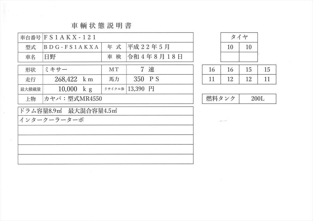 | コメント | カヤバ型式MR4550 ドラム容量8.9㎥ 最大混合容量4.5㎥ 日野プロフィア10t車 車検令和4年8月18日 アドブルー無 2デフ7速ミッション 22年式 価格のお問い合わせ052-821-1557名輸自動車 中谷(ナカヤ)までお電話お待ちしてます。 |