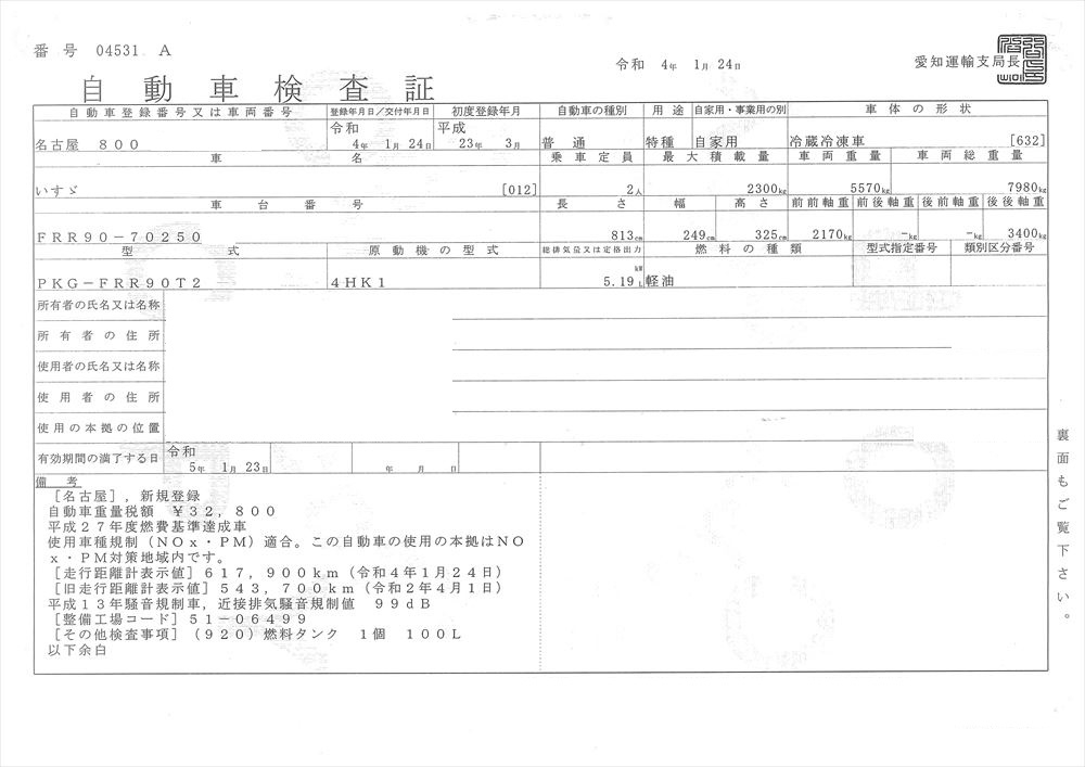 | コメント | 格納ゲート ワイドボデー内寸 長6m01 巾広2m28 高2m08 左サイドドア ジョロダー4列 ラッシング2段 -30℃設定 冷凍機:東プレ 型式XZ47LOD-C 低温ガスR404a バックモニタ カメラ イスズ4t PKG-FRR90T2 車検 令和5年1月23日 23年式 210Ps 6速ミッション エアサス 積載2300㎏ 走行61万㎞ 価格のお問い合わせ052-821-1557名輸自動車 中谷(ナカヤ)までお電話お待ちしてます。 |