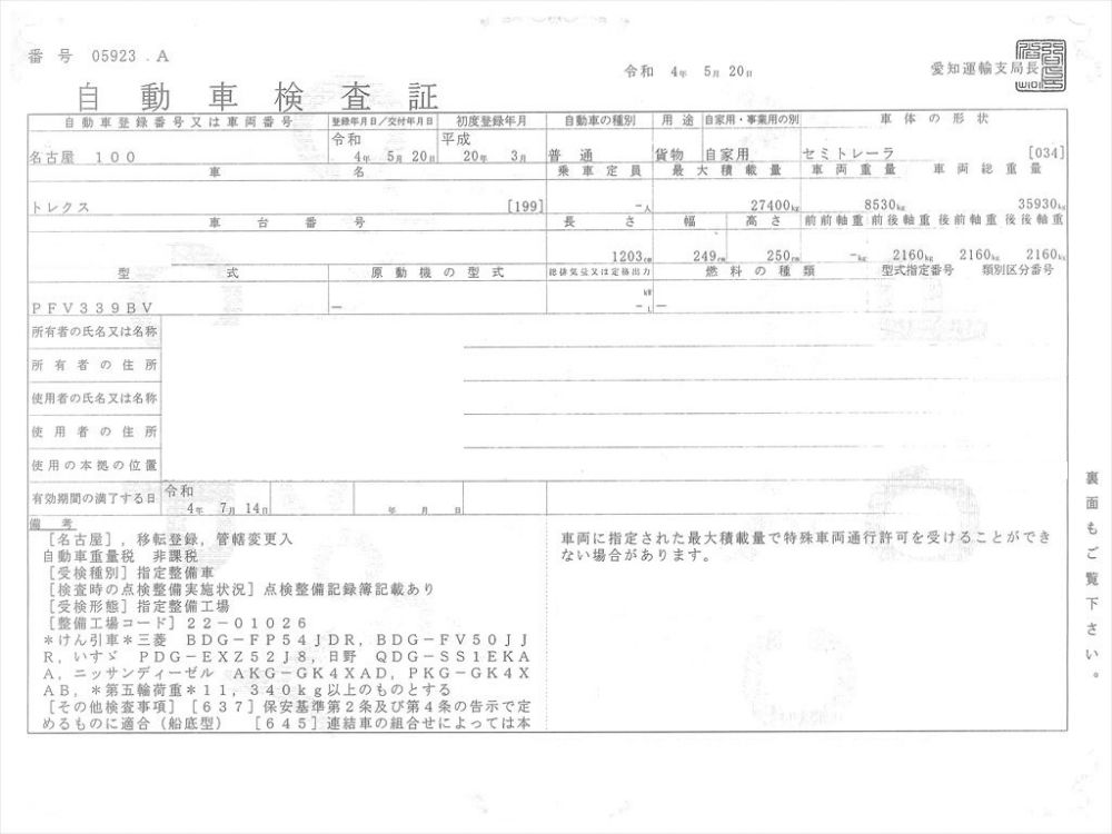 | コメント | トレクス PFV339BV 平成20年式(2008年2月) 3軸フラット トレーラ 車検令和4年7月14日 全長12m3 巾2m49 高250 シングル 引 前ピン 73㎝ 1m19(ピンから地面) フラット Vカット兼用 床板付 積載27,400㎏ 第五輪荷重11,340㎏以上 スタンション床フック 2デフでも引けます車検証記載 価格のお問い合わせ052-821-1557名輸自動車 中谷(ナカヤ)までお電話お待ちしてます。 |