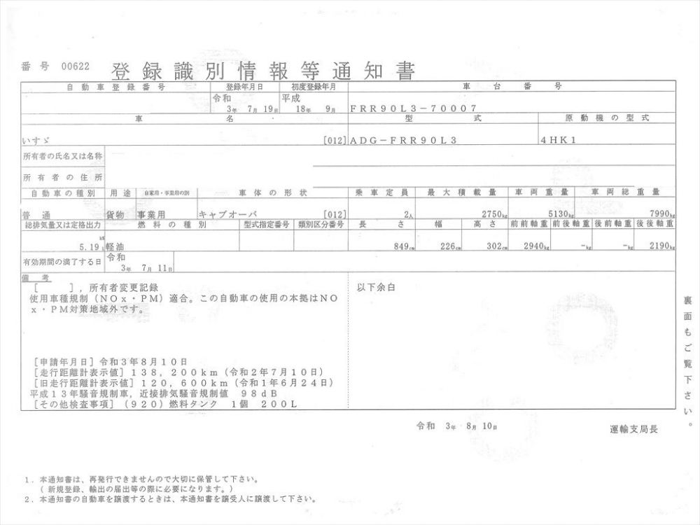 | 車検 | 抹消 |