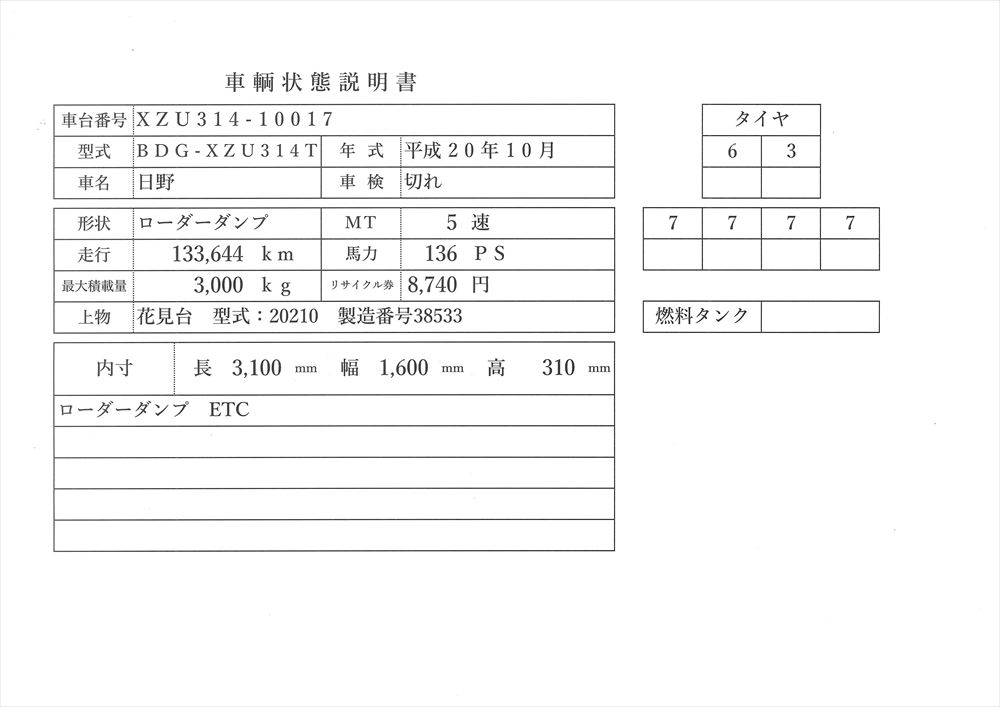 | コメント | 重機積み 土砂積み 兼用 スライドボデー ローダーダンプ 花見台 型式:20210 積載3t 日野20年式 車検切れ ナンバー付 車検楽です BDG-XZU314T 3人乗り 価格のお問い合わせ052-821-1557名輸自動車 中谷(ナカヤ)までお電話お待ちしてます。 |