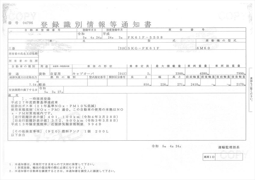 | コメント | 平成24年式 平アルミ 三菱ふそう SKG-FK61F 220Ps 6気筒ICターボ 積載3.3t ボデー長6.2m 巾2.1m 高59cm ベット付 パブコ:123B2008 床フック13×2 床 鉄板 スタンション前方2対 後方中央1ケ 価格のお問い合わせ052-821-1557名輸自動車 中谷(ナカヤ)までお電話お待ちしてます。 |
