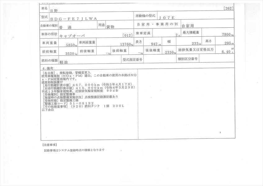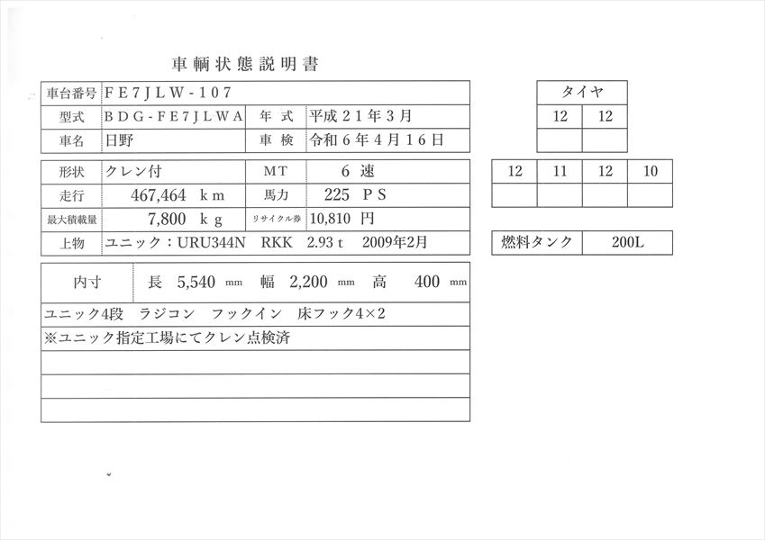 | コメント | 日野 増トン 積載7.8t クレン付 ユニック4段 ラジコン フックイン 2.9t吊り ボデー長5.54m 標準巾2.2m 高40㎝ 6速ミッション 225Ps 平成21年式 車検 令和6年4月 価格のお問い合わせ052-821-1557名輸自動車 中谷(ナカヤ)までお電話お待ちしてます。 |