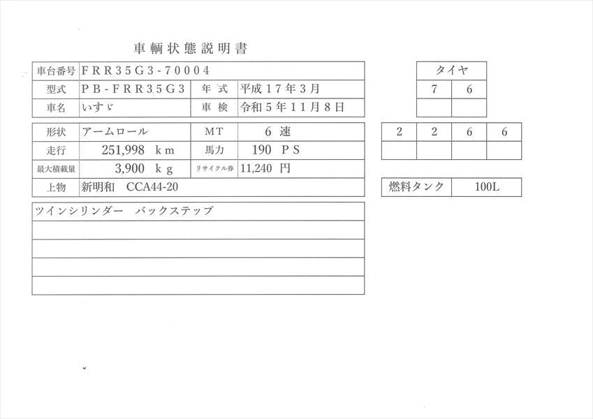 | コメント | 平成17年式 アームロール 新明和 ツインシリンダー CCA44-20 車検 令和5年11月 バックステップ 価格のお問い合わせ052-821-1557名輸自動車 中谷(ナカヤ)までお電話お待ちしてます。 |