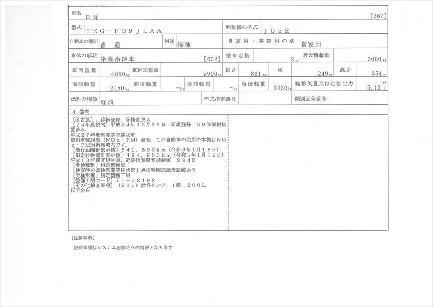 | コメント | 平成24年式 日野 冷凍ウイング 走行54万㎞ 積載3.0t 車検令和7年1月18日 ボデー内寸 L623 W240 H239 冷凍機:東芝 ラッシング2段 床フック5×2 バックモニタ TKG-FD9JLAA 価格のお問い合わせ052-821-1557名輸自動車 中谷(ナカヤ)までお電話お待ちしてます。 |