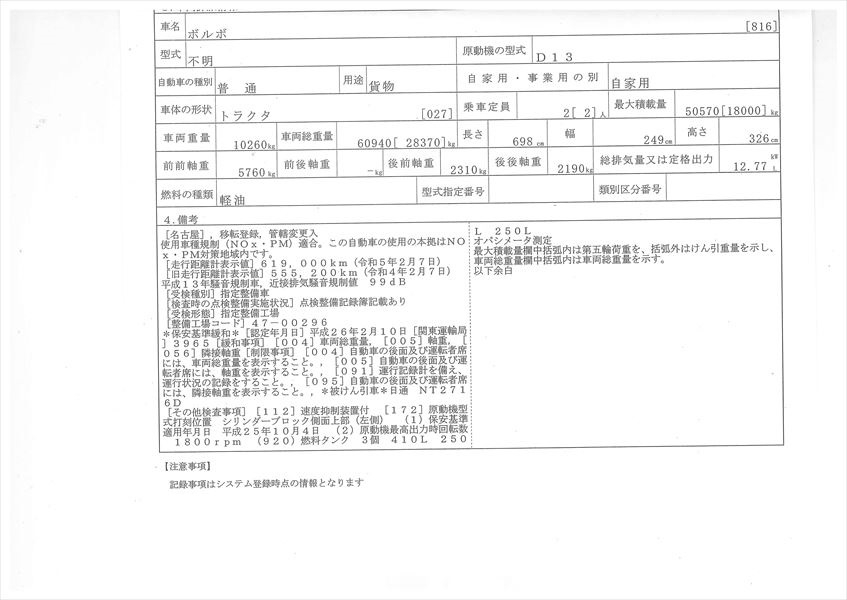 | コメント | ツーデフ リヤエアサス 520ps 第5輪18t オートマチック ボルボ 車検 切れナンバー付 タイヤ 全部 良 走行63万㎞ 価格のお問い合わせ052-821-1557名輸自動車 中谷(ナカヤ)までお電話お待ちしてます。 |