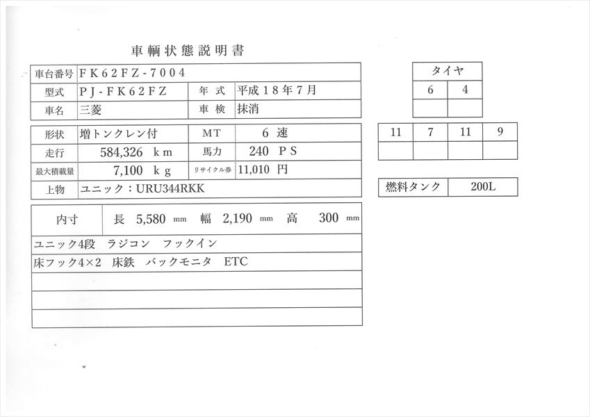 | コメント | 増トンクレン付 積載7.1t ユニック4段 ラジコン フックイン URU344 RKK 2.93t吊 DATE 2006.5 平成18年5月製造 同年式 L5.5m 標準巾W2.2m H30㎝ 床フック4×2 床鉄板 三菱ふそう 新型キャビン ベット付 PJ-FK62FZ 平成18年式 240ps 6気筒エンジン 6速ミッション 走行58万㎞ 抹消 価格のお問い合わせ052-821-1557名輸自動車 中谷(ナカヤ)までお電話お待ちしてます。 |