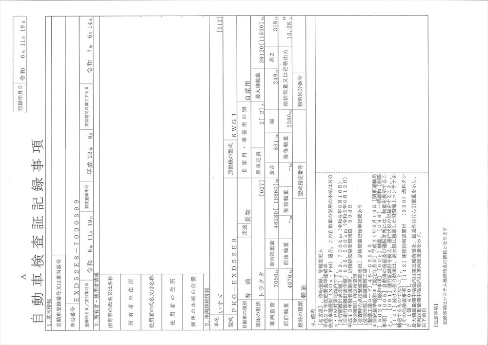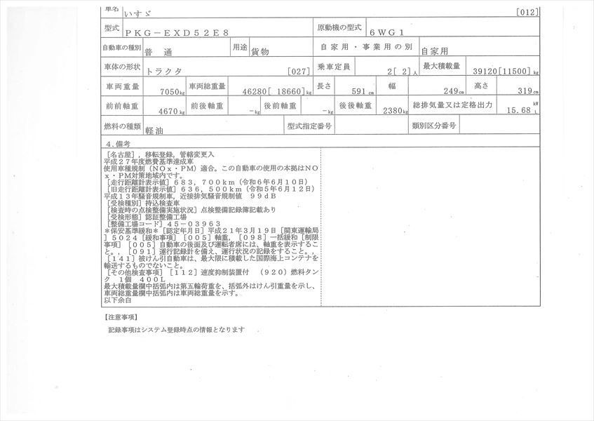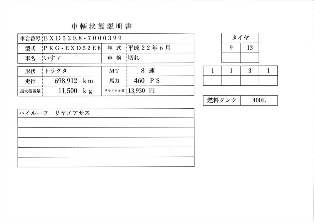 | コメント | 型式 PKG-EXD52E8 車台番号 EXD52E8-7000399 少長ホイルベース 標準車より 30㎝前後 全長5.91m PKG-EXD52E8 積載11.5t 460ps リヤエアサス ミッションLOHI 8速 走行69万㎞ ハイルーフ 平成22年式 価格のお問い合わせ052-821-1557名輸自動車中谷(ナカヤ)までお電話お待ちしてます。 |