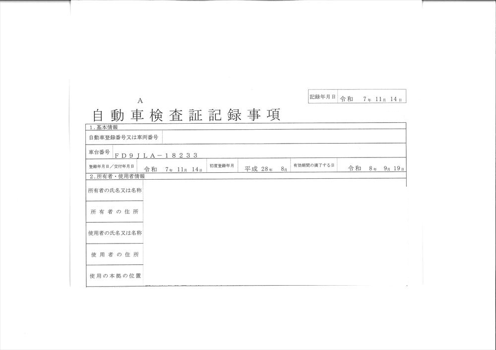 | 車検 | 2026(R8)年 9月 19日 |