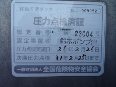 コメント | タツノ 型式:L20SB-PC H5年11月 メーターホースリール 圧力点検 31年2月25日まで 最大数量1.9㎘ 灯油 価格のお問い合わせ052-821-1557名輸自動車 中谷(ナカヤ)までお電話お待ちしてます。 |