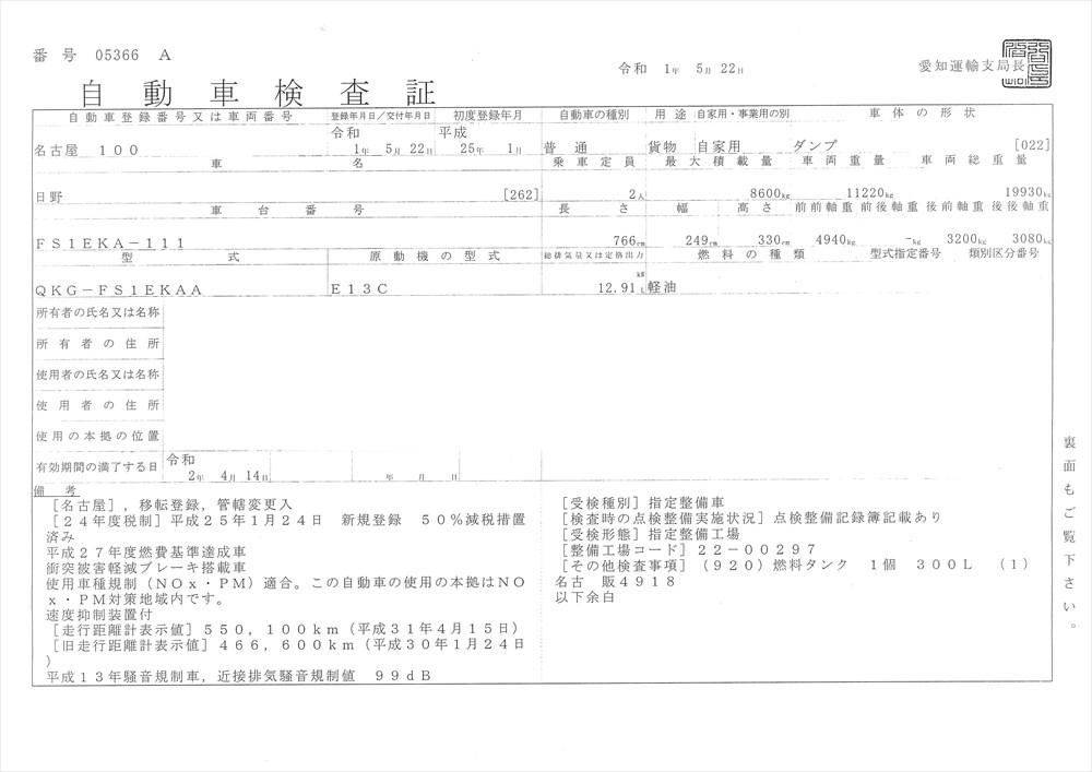 | 荷台内寸 | 480×220×52cm 長x幅x高 |