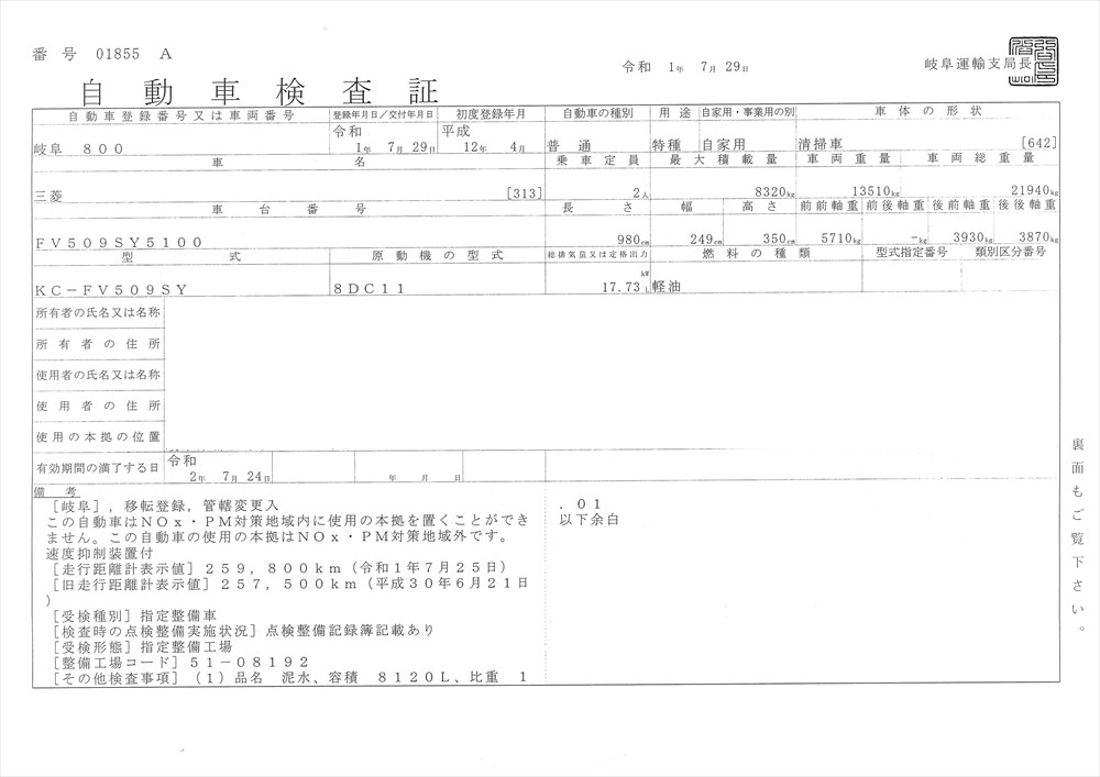| 荷台内寸 | -×-×-cm 長x幅x高 |