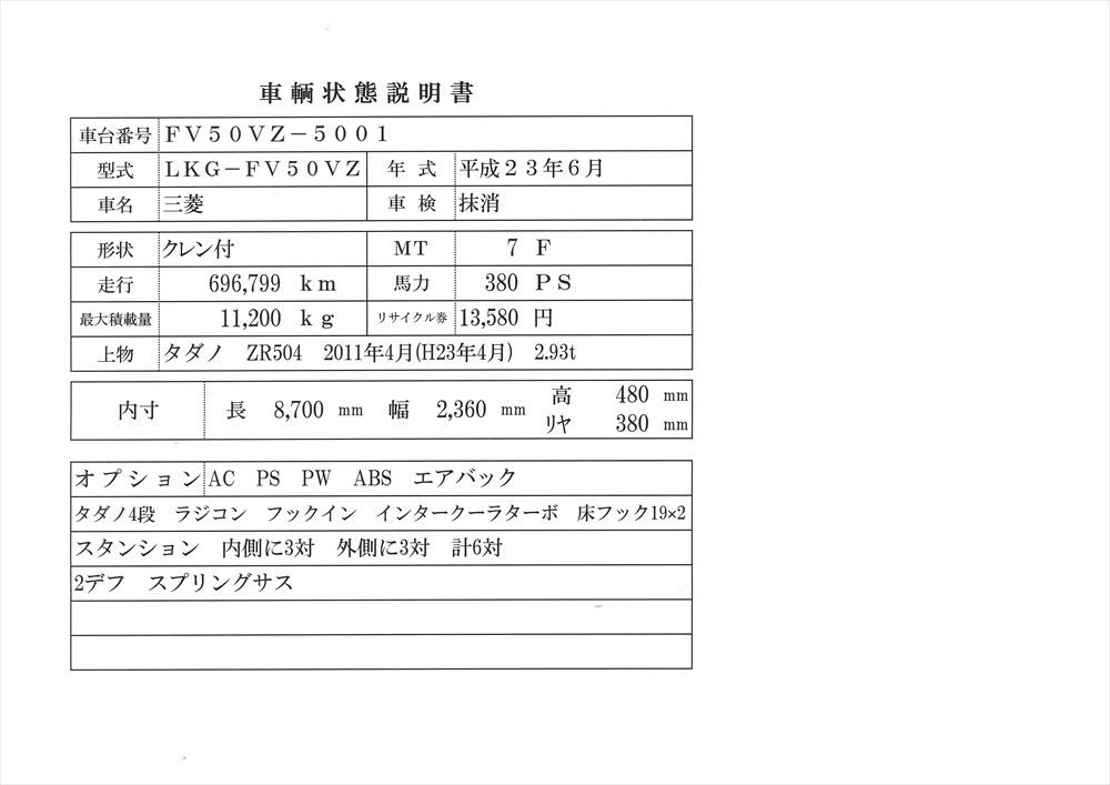 | コメント | タダノ ZR504 2011年4月(H23年4月) 2.93t タダノ4段 ラジコン フックイン インタークーラターボ 床フック19×2 スタンション 内側に3対 外側に3対 計6対 2デフ スプリングサス 価格のお問い合わせは、052-821-1557(ナカヤ)まで。 保障なし |