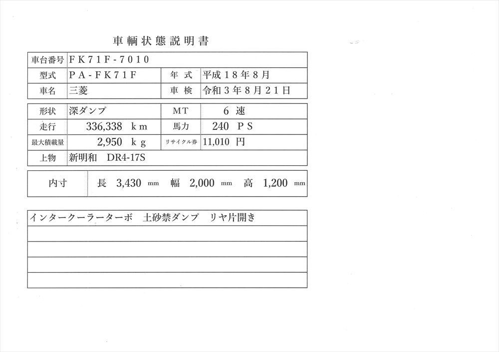 | コメント | 新明和DR4-17S 土砂禁ダンプ リヤ片開き ボデー長3m43 巾2.0 高1.2 三菱ふそう 240Ps インタークーラーターボ 直列6気筒 6速ミッション 走行33万㎞ 価格のお問い合わせ052-821-1557名輸自動車(ナカヤ)までお電話お待ちしてます。 |