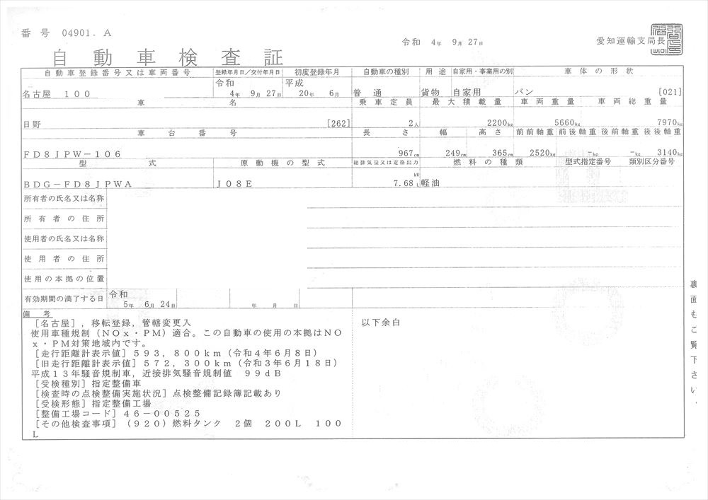 | 走行距離 | 594,719km |