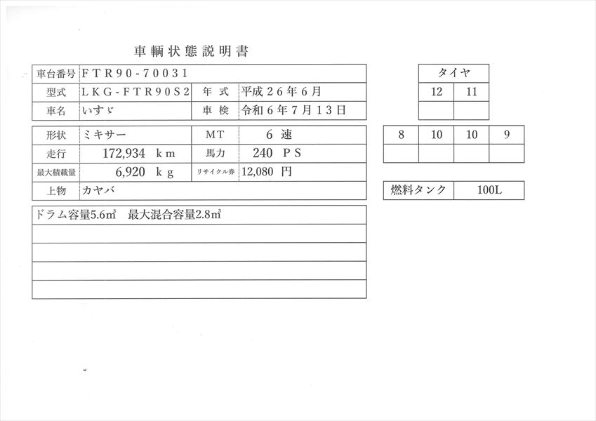 | コメント | 平成26年式 カヤバ ドラム容量5.6㎥ 最大混合容量2.8㎥ 積載6.92t 車検 令和6年7月 いすゞ LKG-FTR90 240Ps 6速ミッション 走行 17万㎞ 価格のお問い合わせ052-821-1557名輸自動車(ナカヤ)までお電話お待ちしてます。 |