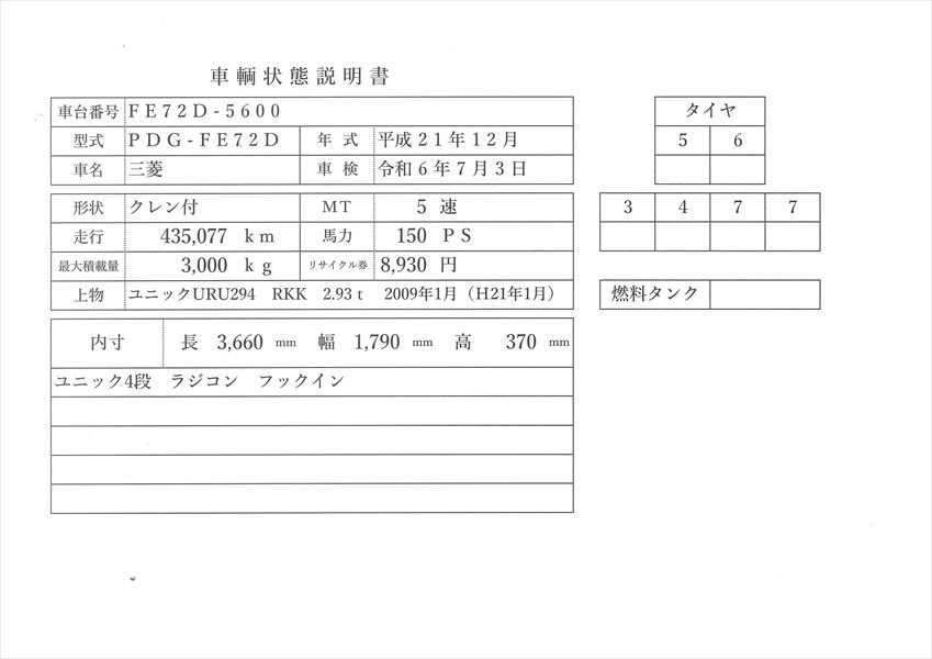 | コメント | ユニック URU294 RKK 4段 ラジコン フックイン 2.93t吊り 車検 令和6年7月 積載3t 三菱キャンター 平成21年式 150Ps 5速ミッション MFG.DAGE2003 1 ワイヤー新品 取り替え済 エアコン点検済 価格のお問い合わせ052-821-1557名輸自動車(ナカヤ)までお電話お待ちしてます。 |