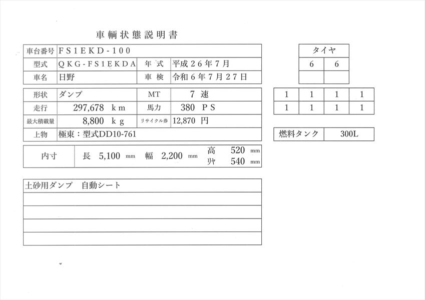 | コメント | 日野 26年式 ダンプ 極東 型式DD10-761 走行29万㎞ 380Ps 7速ミッション L5100 W2200 H520 車検 令和6年7月 自動シート 価格のお問い合わせ052-821-1557名輸自動車(ナカヤ)までお電話お待ちしてます。 |
