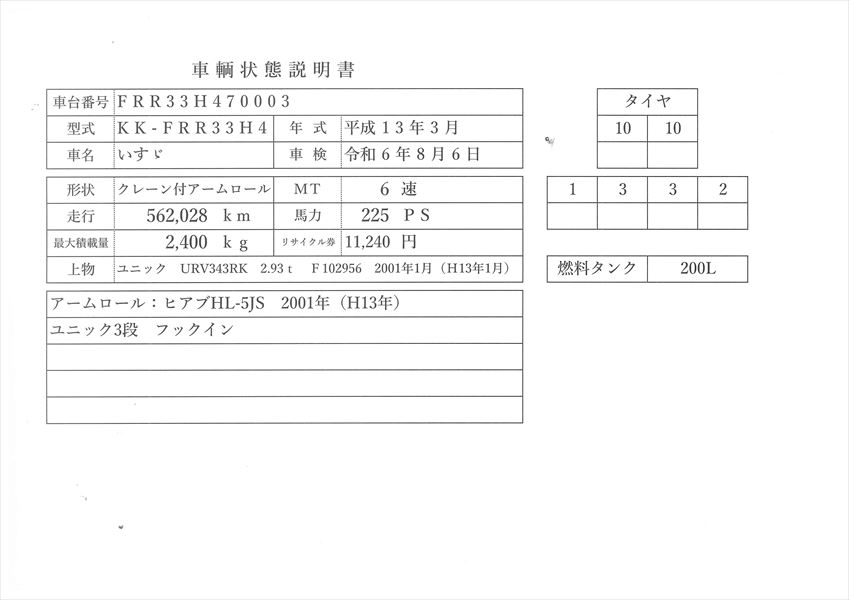 | コメント | クレン付 アームロール(ヒアブ製 HL-5JS) ユニック3段 フックイン 車検8月 価格のお問い合わせ052-821-1557名輸自動車 中谷(ナカヤ)までお電話お待ちしてます。 |