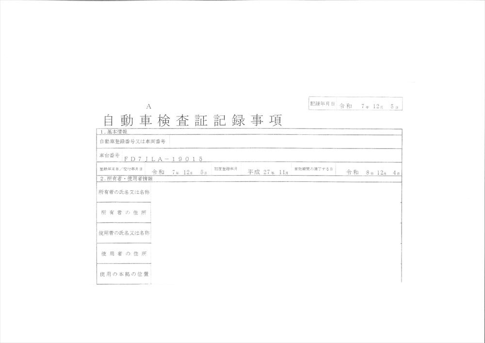 | 年式 | H27年11月 |